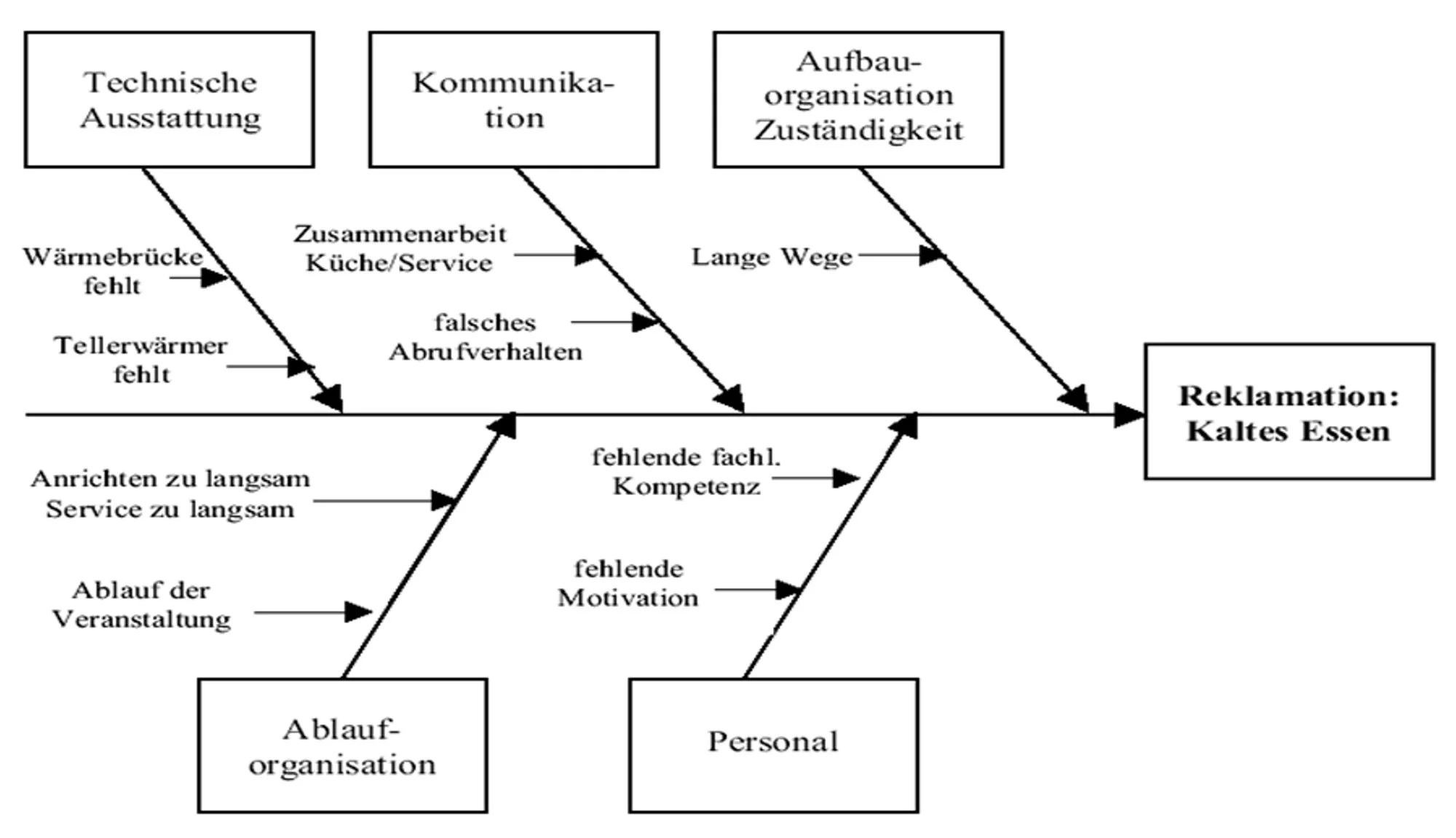 Verbinden Sie die Beschwerdegründe mit den möglichen Ursachen. Wenn ein Gast „kaltes Essen“ reklamiert, muss die Ursache nicht zwingend eine fehlende Wärmebrücke sein. Oft liegen die Gründe in der Kommunikation zwischen Küche und Service oder in einem falschen Abrufverhalten.