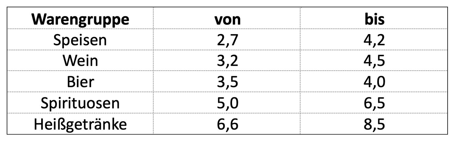 Dieser allgemeine Faktor sollte jedoch weiter unterteilt werden – mindestens in Speisen und Getränke, idealerweise sogar weitere Warengruppen. So entsteht ein differenziertes Bild, das die Besonderheiten jeder Warengruppe besser abbildet.